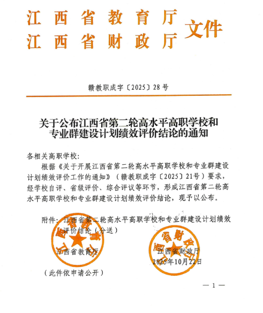 江西省第二轮高水平高职学校和专业群建设计划绩效评价