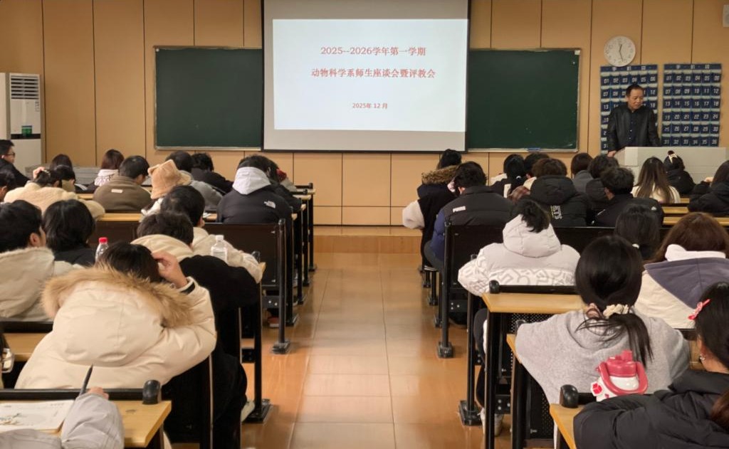 为持续推动教学质量提升,近日,动物科学系在博学楼300教室组织召开了本学期学生评教会议。动物科学系主任、各教研室主任、教师代表以及24级、25级各班学生代表共计140余人参加会议,共同围绕教学各方面情况开展评议交流,为教学质量提升凝聚共识。