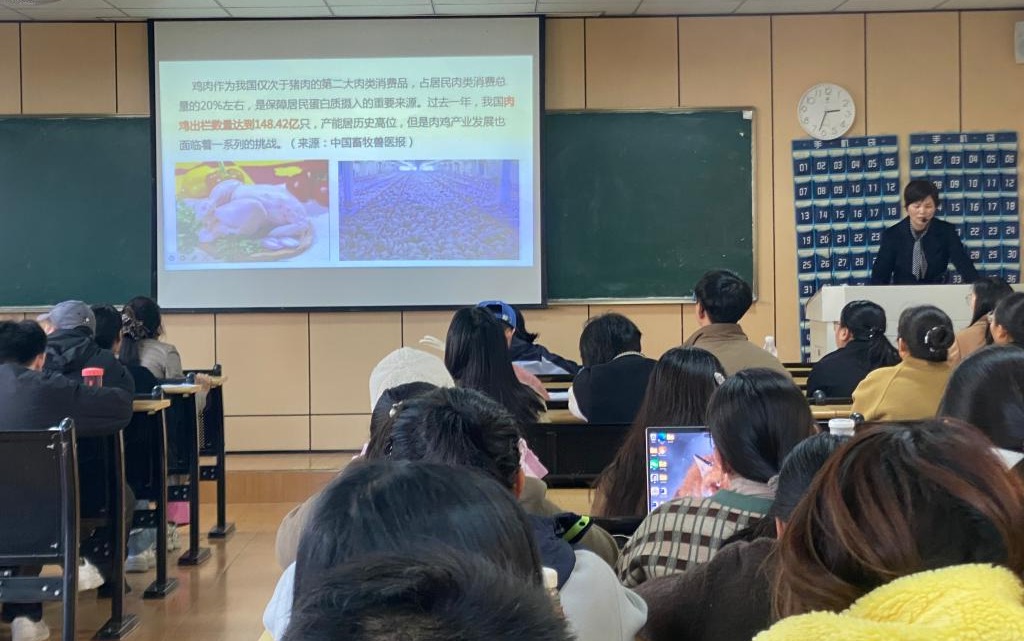 公开课上,三位主讲教师结合各自所授课程,精准挖掘、自然融入了丰富的思政内涵。周升志老师在讲授《动物药理》中青霉素相关知识时,通过回顾其发现历程,巧妙地将科学探索所需的严谨细致精神、科技工作者的爱国情怀以及整体国家安全观等元素渗透其中,引导学生尊重科学、勇担重任。黄小红老师在《养禽与禽病防治》课程中,围绕肉用仔鸡生产等专业知识,有机融入了“绿水青山就是金山银山”的生态理念、畜牧业绿色高质量发展要求以及种质资源安全对于国家战略的重要性,强化了学生的可持续发展意识与行业使命感。张平老师则在《动物防疫检疫》课堂上,以重大动物疫情处置为切入点,深刻阐释了我国“集中力量办大事”的制度优越性,并引导学生深入思考畜牧业从业者所肩负的社会责任与担当,激发了学生的家国情怀与职业荣誉感。三位老师的讲授,既展现了扎实渊博的专业素养,更实现了思政教育如“溶盐于水”、春风化雨般浸润心田的效果,获得了听课教师的一致好评。