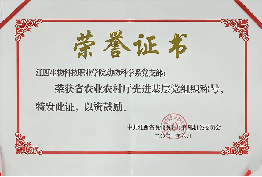 动物科学系党支部荣获省农业农村厅2021年先进基层党组织