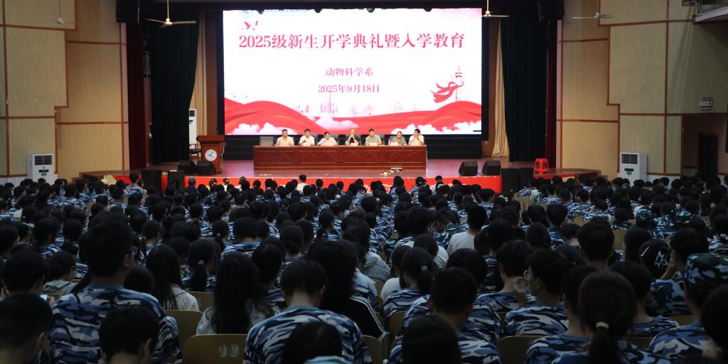 时维九月,序属三秋。2025年9月18日晚,动物科学系2025级新生开学典礼在校大礼堂报告厅隆重举行。动物科学系负责人、相关行政管理人员、新生班主任与全系1162名新生共同出席了典礼,典礼由动物科学系副主任主持。