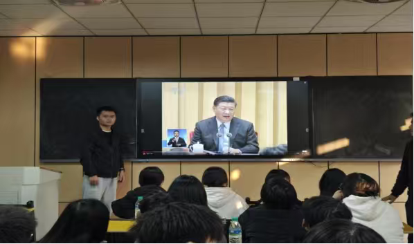 活动中,学管老师围绕“两个结合”“六个必须坚持”“十个明确”“十四个坚持”“十三个方面成就”等核心内容展开系统解读,逻辑严谨、论述深刻,精准传达党的创新理论的精神实质。团总支书记、副书记全程深入团支部参与活动,现场观摩督导,切实将基层团建工作要求落到实处。